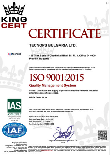 Ask us how we do it—and let Tecnops show you how our knowledge, product range, and international partnerships can drive better outcomes for your automation and pneumatic needs in Bulgaria.